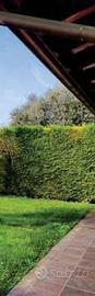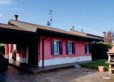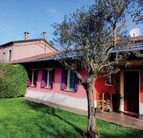 Si tratta di una abitazione di testa, lato est facente parte di un edificio residenziale a schiera, disposta al solo piano terra con garage di 21 metri quadri e giardino esclusivo. Si compone di soggiorno, camera, studio, bagno, due camere e disimpegno.