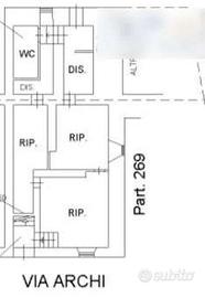 Porzione di casa situata a Talamello (RN), in Via degli Archi. Limmobile è disposto su tre livelli: al piano terra si trovano tre ripostigli, due disimpegni e un servizio igienico; al piano primo soggiorno, tinello, cucina e terrazzo; al piano secondo tre camere da letto e un disimpegno. La proprietà si trova in una zona molto tranquilla, ideale per chi desidera vivere in un contesto riservato, pur avendo a disposizione tutti i comfort e i servizi offerti dalla zona circostante.