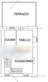 L'alloggio si compone al piano terra da ingresso-salotto, cucina, disimpegno, bagno, sottoscala. Il piano primo si compone di disimpegno e tre camere. Il piano secondo è adibito a soffitta.