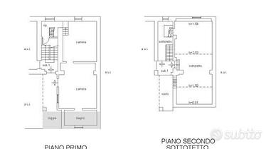 Labitazione è composta da locali su tre piani: terra, primo piano e piano sottotetto. Dalle scale comuni si accede al piano terra composto da cucina, pranzo, soggiorno, bagno ripostiglio e portico. Il piano primo è composto da due camere, bagno, ripostiglio e loggia; il piano secondo è un sottotetto accessibile dal piano primo dalla scaletta interna e dalle scale comuni.
