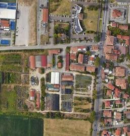 Area scoperta 1556 mq e tettoia spettante in comproprietà con terazzo di 5 mq.