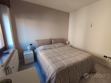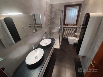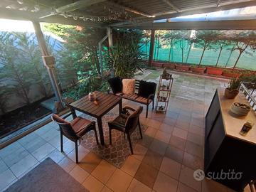 Porzione di bifamiliare con area esterna esclusiva in un tranquillo quartiere residenziale comodo ai servizi. La casa e' disposta su due livelli più la taverna al piano interrato. Un comodo ingresso ci conduce alla zona giorno che colpisce soprattutto per la sua luminosità e ariosità, valorizzate da un piacevole camino a vista utile soprattutto nelle fredde serate d' inverno. Una portafinestra conduce all' esterno dove troviamo un' area coperta protetta da pioggia e sole ideale per le cene estive. Al piano terra è inoltre presente un grande e moderno bagno con doppio lavabo e doccia con box in cristallo. Una scala in legno a vista ci guida al piano superiore dove troviamo una pratica zona disimpegno, due camere matrimoniali, un bagno e un terrazzino. L' area esterna è completamente pavimentata e consente di parcheggiare almeno 4 auto di cui 2 al coperto nonchè di poter praticare i propri hobby in un' area riservata prettamente collegata all' abitazione. Una scala in muratura ci porta al piano interrato dove è stata realizzata una taverna di 40 mq rifinita con materiali moderni di prima qualità. E' predisposta per un angolo cottura e un' area soggiorno ed è servita da un imponente camino ideale per realizzare al meglio le cene e le serate con gli amici. La casa ha ingresso indipendente sia pedonale che carraio e l'area privata si sviluppa su tre lati ed è delimitata da una siepe. L' INDIRIZZO INDICATO IN MAPPA NON INDICA L' UBICAZIONE ESATTA DELL' IMMOBILE.
