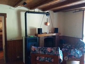 A Riglio (fraz. di Bettola PC), in posizione panoramica, porzione di casa bifamiliare arredata di mq 130 lordi su 3 piani (la parte di destra della foto), con rimessa e giardino recintato di circa mq 500. Piano terra: soggiorno-pranzo con camino, cucina e cantina. Primo piano: anticamera, camera matrimoniale e ampio bagno. Mansarda: ampia mansarda open space. In buono stato, classe energetica in via di definizione. Contatti: 0524597854 - 3332859318