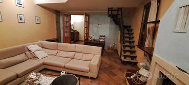 Vendesi porzione di casa su 3 piani di 250 mq, libera su 3 lati, stalla e fienile ristrutturata nel 2010 con annesse 3 autorimesse di mq 90. Classe energetica F. Buone finiture, riscaldamento a pavimento su 2 piani, pavimentazione in cotto e parquet di legno