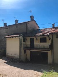 Lusiana Conco: via Sciessere lungo S.P. 69 porzione di casa indipendente abitabile di circa mq 75 composta da cucina, bagno e garage al piano terra, 2 camere, bagno e ripostiglio al piano primo, camera al piano secondo. Area esterna di proprietà esclusiva di mq. 100 circa.