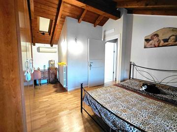 Rif:F219 (128323756) - SANT'ANDREA DI TORRILE: In una piccola frazione del comune di Torrile servita da autobus e circondata dalla campagna, proponiamo in vendita questa porzione di casa semindipendente su due livelli completamente e finemente ristrutturata ed arredata! L'accesso all'abitazione è tramite un cortile pavimentato e recintato perfetto per rilassarsi o pranzare all'aperto nella bella stagione; l'ingresso è al piano terreno ove troviamo la zona giorno composta da un pratico soggiorno che da accesso ad uno spazio esterno retrostante dotato di comoda lavanderia; una moderna stufa a pellet canalizzata riscalda tutti gli ambienti della casa e rende la sala più accogliente, riducendo notevolmente le spese di riscaldamento! Da qui si accede alla cucina completamente arredata su misura con isola centrale con piano in marmo scuro e completa dei più moderni elettrodomestici, dotata di una portafinestra che da accesso al cortile privato. Abbiamo poi un comodo bagno dotato di doccia a servizio della zona giorno ed un pratico ripostiglio/guardaroba, perfetto per riporre vari oggetti di uso quotidiano. Tramite comoda scala si accede al piano superiore dove troviamo la zona notte con tetto il legno lamellare a vista e pavimenti in legno, composta da un'ampia camera matrimoniale, una camera doppia con possibilità di creare un piccolo soppalco ed un secondo bagno con vasca! L'immobile è termoautonomo e climatizzato in entrambi i piani, isolato con cappotto interno e con doppi vetri con zanzariere per un ottimo rendimento energetico; le finiture sono di alto livello, quali pavimenti, rivestimenti, serramenti e bagni, dotato di pregevoli arredi che lo rendono già pronto per essere abitato! Adiacente all'abitazione abbiamo un parco con giochi bimbi ed un comodo parcheggio. Si precisa che un vano a piano terreno è accatastato come locale accessorio. Euro 176.000 - Classe: C - IPE: 175.00 kWh/mq anno