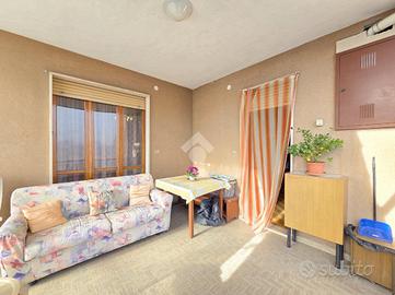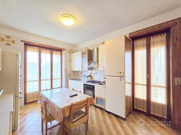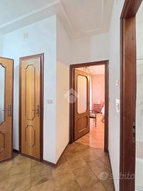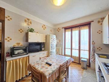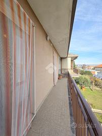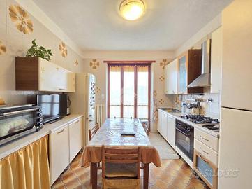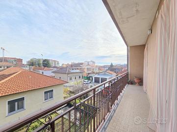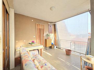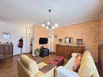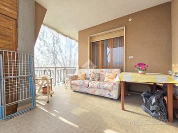 La quadrifamiliare che ospita l'appartamento, è circondata dai giardini privati ed è ubicata nella zona centrale di Alpignano. La sua posizione consente di raggiungere a piedi qualsiasi servizio, compreso stazione ferroviaria e mezzi pubblici. Il soggiorno living è raggiungibile attraverso il disimpegno aperto su quest'ultimo e, consente di utilizzare il primo dei 3 lunghi balconi. Adiacente al living è presente la comoda cucina vitabile, divisa dal soggiorno da una tramezza eventualmente abbattibile. Fiore all'occhiello dell'appartamento è il grande terrazzo raggiungibile dalla cucina, ampio e piacevolmente esposto al sole. La sua disposizione, consente al secondo balcone di terminare al suo interno. Il funzionale disimpegno della zona notte è consegubile sia dalla cucina che dal living. Al suo interno è presente il ripostiglio, sicuramente comodo. La prima camera da letto, anch'essa collegata al grande terrazzo è rifinita con pavimentazione legnosa. Adiacente a quest'ultima è presente il bagno finestrato. Recentemente ristrutturato, il servizio igienico ospita la doccia angolare in cristallo. Le sue dimensioni lasciano spazio a lavatrice ed asciugatrice senza togliere superficie utile al resto. La seconda camera da letto, anch'essa matrimoniale, è rifinita con lo stesso pavimento della prima e possiede un lungo balcone privato arricchito dalle tende invernali a rullo. Finestrato e libero sui 3 lati, l'appartamento gode di una piacevole luminosità e possiede la cantina al piano interrato. Pur non mancando lo sfogo esterno offerto dal grande terrazzo, l'immobile dispone del giardino privato al piano terreno, ideale per i momenti all'aperto. Al suo interno, volendo è possibile parcheggiare le proprie auto. A completare la proprietà è il piccolo garage di fronte al giardino. Ideale per chi non ha particolare urgenza nei tempi, l'immobile è attualmente locato ad euro 6.600 annui. Privo di amministratore e di spese condominiali, il fabbricato che ospita l'immobile è ...