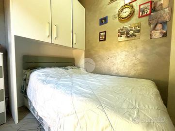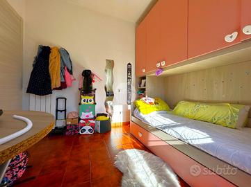 Salendo al livello superiore si sviluppa la zona notte, composta da una spaziosa camera matrimoniale con balcone, una camera media, anch'essa dotata di balcone e un secondo bagno finestrato con doccia.