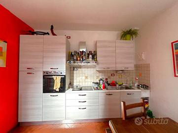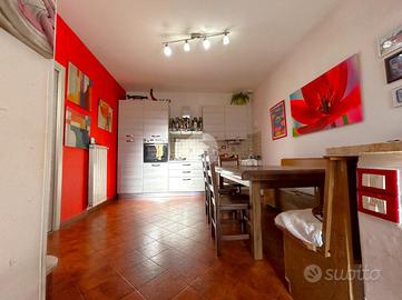 Entrando, siamo accolti da un ampio e luminoso soggiorno con angolo cottura, uno spazio pensato per garantire comfort e funzionalità. Sullo stesso livello troviamo una camera da letto con accesso a un balcone che conduce al lato esterno della casa. Un bagno finestrato completo di doccia.