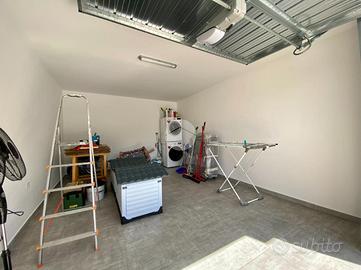 Al piano terra troviamo un accogliente soggiorno con angolo cottura, un bagno finestrato con box doccia, un portico coperto e abitabile ideale per pranzi o cene all'aperto, e un garage di circa 22 mq con basculante motorizzata.