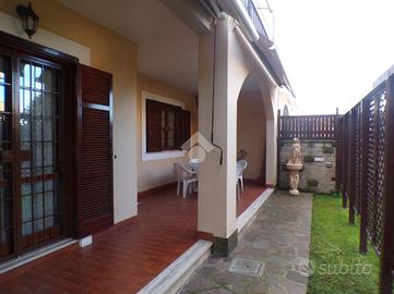In zona residenziale, a 1 km dal mare disponiamo di una villa angolare disposta su due livelli. Al piano terra troviamo sala con camino, cucina abitabile, bagno con box doccia e studio. Salendo al primo piano ci accoglie disimpegno, due camere matrimoniali di cui una con accesso diretto sul terrazzo dotato di tende da sole e acqua, cameretta e bagno con vasca. Infissi in legno doppio vetro, inferiate a tutte le finestre e portone blindato. Completa la proprieta' un giardino di 250 mq con accesso sia pedonale che carrabile e la possibilita' di parcheggiare due auto all'interno della proprieta'. Il giardino è servito da acqua di pozzo in comune, mentre per l'abitazione abbiamo acqua Latina, riscaldamento autonomo con bombolone condominiale. Ottima soluzione come prima abitazione.