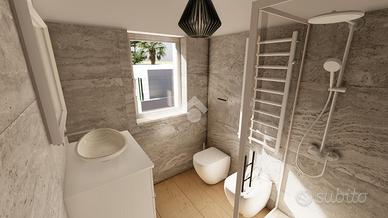 Al piano terra, attraverso il portone d'ingresso, si accede a un ampio soggiorno con cucina a vista e bagno. L'ambiente, luminoso e accogliente, è impreziosito da una porta finestra che conduce al cortile esterno: uno spazio ideale da arredare con tavolo e sedie, perfetto per vivere le giornate estive in compagnia.