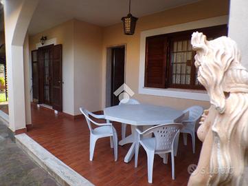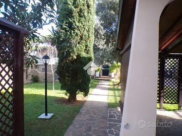 In zona residenziale, a 1 km dal mare disponiamo di una villa angolare disposta su due livelli. Al piano terra troviamo sala con camino, cucina abitabile, bagno con box doccia e studio. Salendo al primo piano ci accoglie disimpegno, due camere matrimoniali di cui una con accesso diretto sul terrazzo dotato di tende da sole e acqua, cameretta e bagno con vasca. Infissi in legno doppio vetro, inferiate a tutte le finestre e portone blindato. Completa la proprieta' un giardino di 250 mq con accesso sia pedonale che carrabile e la possibilita' di parcheggiare due auto all'interno della proprieta'. Il giardino è servito da acqua di pozzo in comune, mentre per l'abitazione abbiamo acqua Latina, riscaldamento autonomo con bombolone condominiale. Ottima soluzione come prima abitazione.