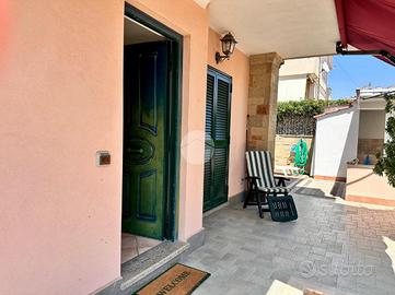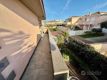 Lido delle Sirene- via delle Castalidi- proponiamo in affitto transitorio da settembre a giugno villino quadrifamiliare, a pochi passi dal mare e dalla fermata Cotral. L'immobile dispone di un ampio giardino angolare con possibilità di parcheggio sia interno che esterno. La casa si sviluppa su due livelli: al piano terra si trovano un soggiorno, una cucina a vista e un bagno con finestra, box doccia e lavatrice. Al piano superiore sono presenti due camere matrimoniali entrambe con accesso a un terrazzo con vista mare, oltre a un secondo bagno con finestra e doccia. Dotato di riscaldamento autonomo a metano e condizionatori.