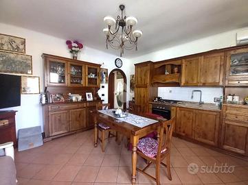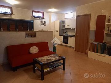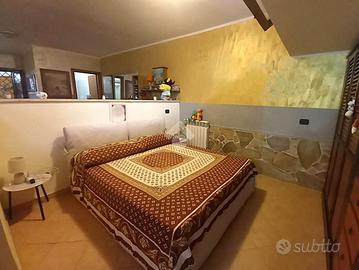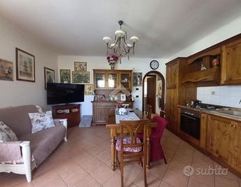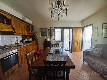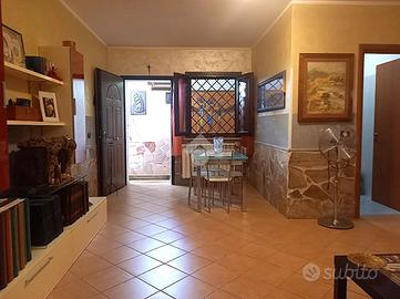 Entrando al piano terra rialzato ci accoglie il soggiorno luminoso con angolo cottura, camera matrimoniale e bagno con doccia e finestra.