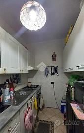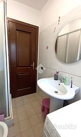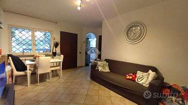 Entrando al piano terra troviamo il soggiorno con cucinotto, cameretta e bagno finestrato con doccia.