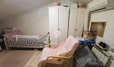 Al piano superiore una comoda matrimoniale con balcone, una seconda camera in parte mansardata ed un ulteriore bagno con vasca e lucernario.