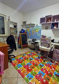 Entrando al piano terra troviamo il soggiorno con cucinotto, cameretta e bagno finestrato con doccia.