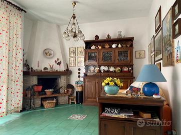 Al piano terra troviamo un ampio e luminoso salone con camino, una cucina abitabile e un bagno di servizio finestrato con box doccia. Dal salone, tramite una porta finestra, si accede all'esterno dove troviamo un grande portico, spazio ideale da attrezzare per mangiare all'aperto, rilassarsi o trascorrere momenti di convivialità.