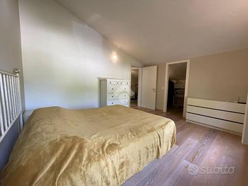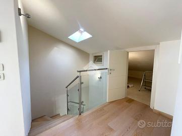 Dalla scala si accede al piano superiore dove si trova la zona notte con due stanze da letto di cui una con armadio 'walk-in', bagno con lucernario, una ampia zona ripostiglio, soffitta e locale lavanderia.