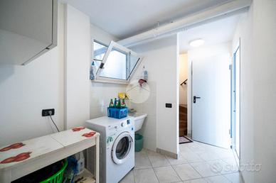 Completa l'offerta abitativa un piano seminterrato composto da un'autorimessa, una lavanderia con annesso locale tecnico e il giardino privato di 125 mq. L'immobile è dotato di predisposizione allarme, pannelli fotovoltaici e solari. La posizione strategica consente di godere della tranquillità della zona residenziale, pur essendo a breve distanza dai principali servizi e collegamenti. Una soluzione abitativa che coniuga eleganza e praticità.