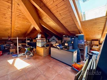 La struttura in pietra a vista conferisce un fascino particolare, mentre il sottotetto rifinito aggiunge un ulteriore tocco di eleganza e praticità.