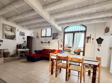 L'abitazione, costruita nel 2007, si distingue per gli spazi generosi e per una distribuzione interna estremamente funzionale. L'ingresso si apre su un ampio e luminoso soggiorno impreziosito dal camino e dalle eleganti travi a vista, un ambiente caldo e accogliente pensato per vivere momenti di relax in famiglia. La cucina è abitabile e ben organizzata, perfetta per chi ama gli spazi conviviali. Sempre al piano terra troviamo un comodo bagno e una spaziosa camera matrimoniale dotata di cabina armadio, soluzione ideale anche per chi desidera la comodità di una zona notte principale sullo stesso livello della zona giorno.