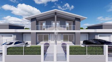 VILLA 2-3: al piano terra: Soggiorno - cucina open space con ampie vetrate - doppio portico - bagno e lavanderia - box auto.