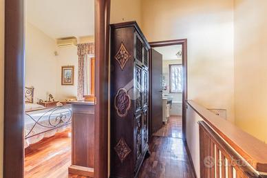 La zona notte, posta al piano superiore, ospita una camera matrimoniale con cabina armadio e balcone, una cameretta e un bagno padronale completo di vasca e doccia.