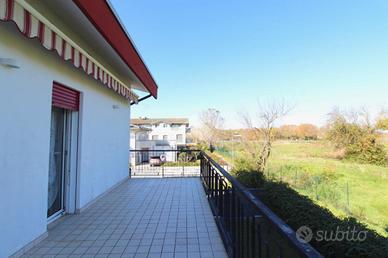 Da entrambe le stanze si può uscire nel terrazzo abitabile dal quale si può godere di una piacevole vista sul giardino e sul campo da golf.