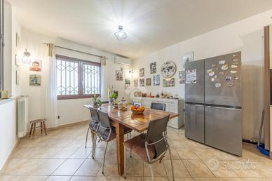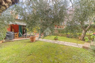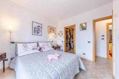La proprietà si svela con eleganza su tre piani collegati da comode scale interne e, grazie al doppio ingresso pedonale e carrabile, offre la rara versatilità di poter ospitare anche due nuclei familiari distinti. Entrando al piano terra, si viene accolti da un'ampia zona giorno dove il calore del termo-camino nel soggiorno invita al relax, mentre la cucina abitabile diventa lo spazio ideale per i sapori di casa. Da qui, lo sguardo corre verso il giardino privato con portico, perfetto per le colazioni al mattino o per le sere d'estate in compagnia, a completare il piano un comodo bagno finestrato con doccia ed un balcone panoramico.