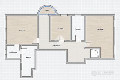 La zona notte, a cui si accede tramite un'elegante scala in resina, ospita tre camere matrimoniali. La suite padronale vanta cabina armadio e bagno privato, mentre le altre due camere, ugualmente spaziose, sono servite da un secondo bagno. Un comodo locale completa il piano, ideale come guardaroba o ripostiglio.