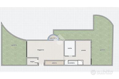 L'immobile si distingue per gli spazi generosi e la luminosità degli ambienti. La zona giorno, particolarmente ampia, si apre su due bellissimi giardini privati che regalano un piacevole senso di continuità tra interno ed esterno. Il soggiorno conduce a una cucina di grande respiro, impreziosita da ampie vetrate sul verde e da una pratica dispensa separata che garantisce ordine e funzionalità.Completa la zona giorno un bagno di servizio al piano terra.