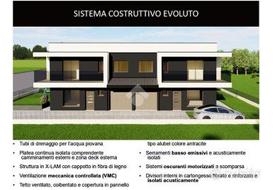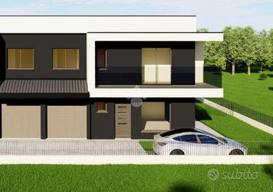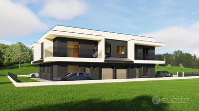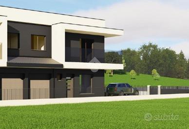 CASALGRANDE: In nuova quadrfamiliare, villetta a schiera ad angolo, composta da; Piano terra: soggiorno con angolo cottura di 25 mq. , bagno, ripostiglio e garage. Piano primo, camera matrimoniale con cabina armadi, due camere singole, ripostiglio e bagno. Villetta in bioedilizia, con struttura in x-LAM, ventilazione meccanica controllata, fotovoltaico, domotizzata, in classe A4, Posizione tranquilla, leggermente collinare in strada chiusa. Consegna in 6-8 mesi dal preliminare.
