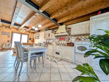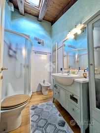 All'interno, un ampio open-space ci fa sentire subito a casa grazie al calore e alla cura di ogni dettaglio: dalla cucina in stile rustico, alle travi di legno a vista, ogni elemento di questo luminoso ambiente rapisce lo sguardo. Oltre alla cucina e alla zona living, al piano terra dell'abitazione troviamo un primo bagno finestrato, comodo come appoggio o servizio per gli ospiti.