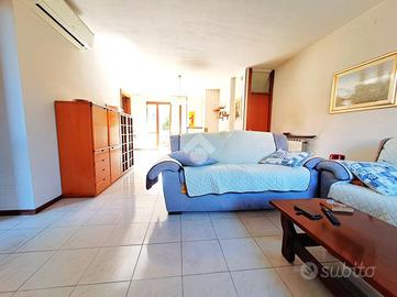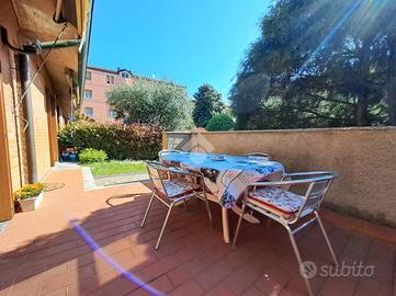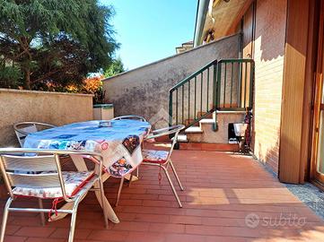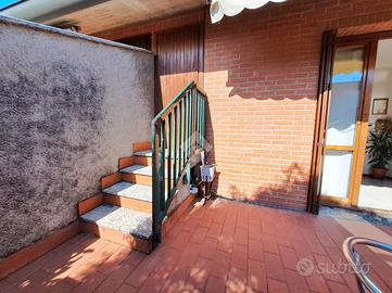 Al piano terra, l'abitazione si distingue per la sua luminosità e ampiezza, con un soggiorno doppio, utilizzabile anche come sala da pranzo e una cucina separata e abitabile. Su questo livello si trovano anche una camera da letto e un bagno finestrato con doccia, oltre a un ampio terrazzo che si affaccia sulla zona giorno della casa.