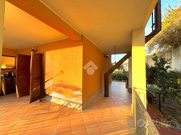 La costruzione è del 1995, internamente si presenta in ottimo stato, in quanto è stata completamente ristrutturata circa due anni fa. Dotato di impianto di allarme, cancello pedonale e carrabile, in entrambe le soluzioni i portoncini di ingresso sono blindati, gli infissi sono in legno con doppio vetro, le porte interne e le persiane esterne sono in legno e sono presenti zanzariere in tutti gli ambienti. Nella zona notte del primo appartamento c'è il parquet ed è presente l'aria condizionata. Nel secondo appartamento sono presenti grate di sicurezza ed inoltre è caratterizzato da rivestimenti in mattoncini in alcuni ambienti.