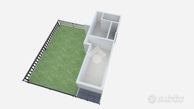 L'ingresso si apre su una luminosa zona giorno con angolo cottura, impreziosita da un caminetto dal design unico che dona calore e personalità all'ambiente. La zona giorno è valorizzata da un doppio accesso esterno: il primo, tramite portoncino blindato, si presta ad essere l'ingresso principale; il secondo, dalla cucina, conduce a un terrazzino con cancelletto riservato.