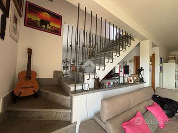 Al piano terra: ampia zona giorno composta da cucina abitabile, soggiorno con camino e accesso al giardino di circa 50 mq e sul balcone panoramico e bagno finestrato con doccia.