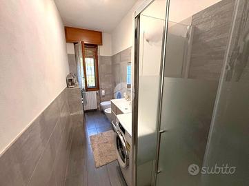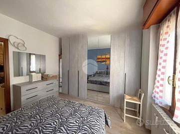 La zona notte consta di una camera da letto matrimoniale; abbiamo inoltre un bagno finestrato e corredato di doccia, ristrutturato nel 2018 insieme all'impianto elettrico ed idraulico e corredato di soppalco ad uso ripostiglio.