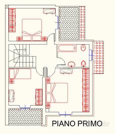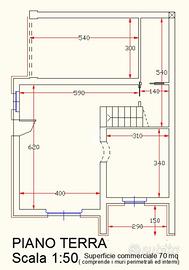 Al piano terra abbiamo un' ampia zona giorno con cucina abitabile, un disimpegno ed un bagno; al piano primo troviamo tre camere da letto ed un bagno.