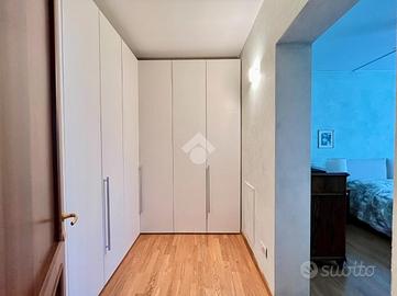 Un disimpegno conduce alla zona notte dove troviamo un bagno cieco di servizio dotato di ventola d'aspirazione, un bagno finestrato con doccia, una camera matrimoniale con angolo cabina armadio e uno studio con doppia finestra, ideale come camera ospiti o ufficio.