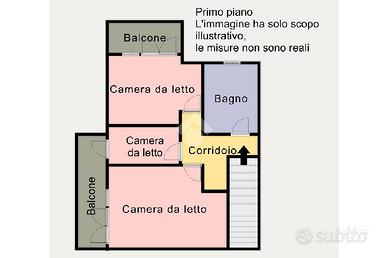 Infine il primo piano, composto da due camere matrimoniali, una cameretta e un servizio igienico finestrato con vasca.