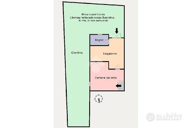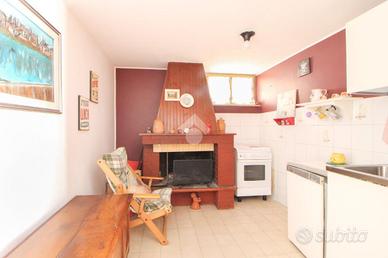 Attraverso una rampa di scale interna (o attraverso il giardino) si accede al piano rialzato, composto da un luminoso soggiorno con angolo cottura, un balcone perimetrale e un comodo ripostiglio.