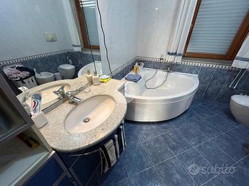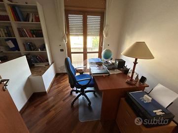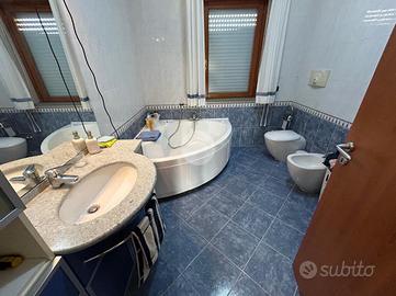 Giungiamo al secondo piano dove abbiamo la zona notte, suddivisa in: due camere da letto, la matrimoniale finestrata, la stanzetta con balcone ed una terza camera, anch'essa con balcone. La terza camera, attualmente adibita ad uso studio ma potrebbe essere una terza stanzetta, il bagno padronale con vasca idromassaggio e box doccia.