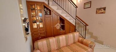 Piano terra: soggiorno, camera matrimoniale, cameretta/studio con balcone, bagno con box doccia.