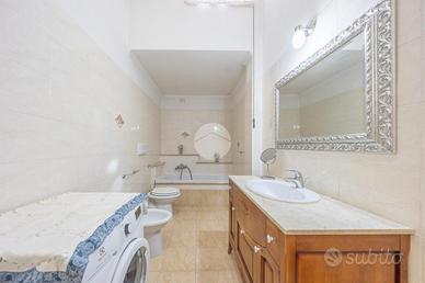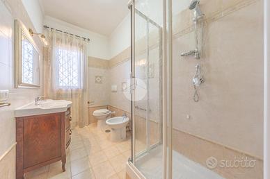 Il piano seminterrato, con ingresso indipendente, è composto da un ampio salone con angolo cottura, un locale multiuso utilizzabile come camera o ripostiglio, e un bagno finestrato con vasca. Da qui si accede direttamente al box auto.