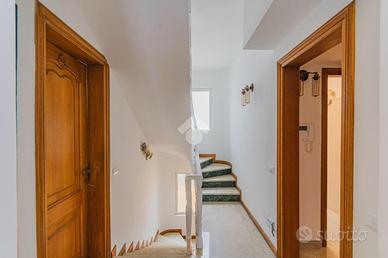 Un'ampia scala consente di raggiungere giardino e il pian terreno.
