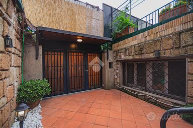 L'ingresso pedonale - dotato di videocitofono - insiste su una corte pavimentata che consente anche l'accesso al piano seminterrato tramite altri due diversi ingressi.