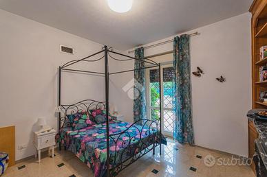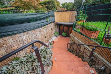 La villa è una porzione di quadrifamiliare articolata su 3 livelli con un giardino di circa 300 mq e una fontana.